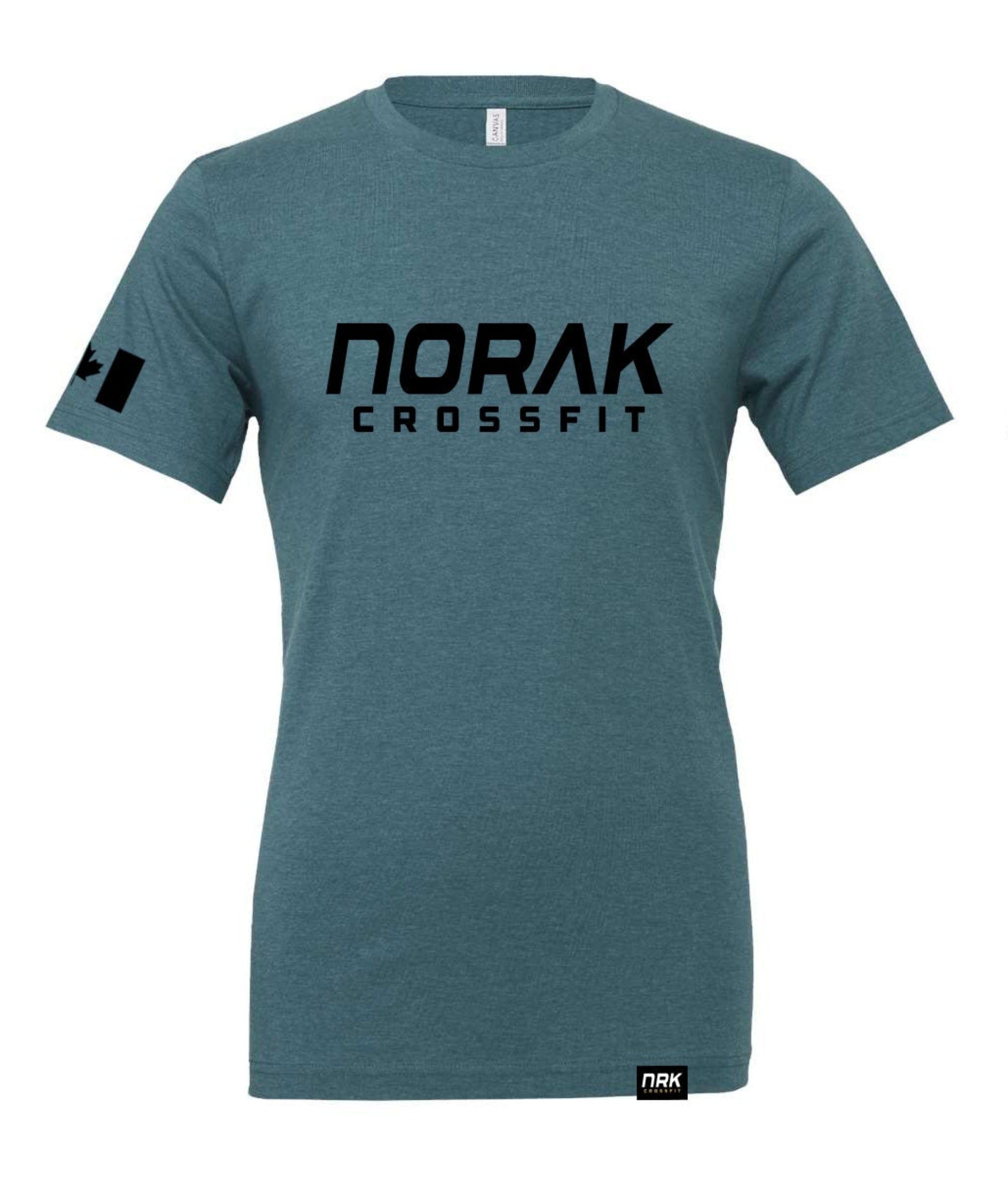 Features NORAK CrossFit chest print with Canadian flag on right arm and NRK hem tag.